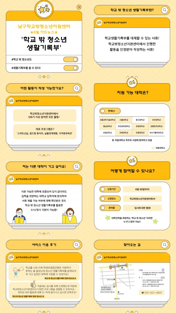 학교밖) 6월 카드뉴스 페이지 정보 작성자 최고관리자 작성일24-06-11 13:53 조회103회 댓글0건 이전글 다음글 답변 목록 본문 남구학교밖청소년지원센터 6월 카드뉴스입니다! 문의사항은 051-621-4831로 전화주세요:) 댓글목록 등록된 댓글이 없습니다. 이전글 다음글 답변 목록