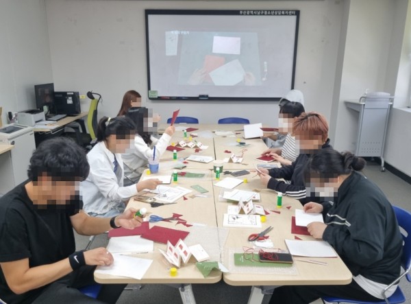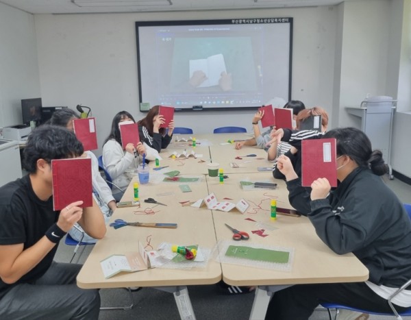 내용 : 한국문화재재단 연계 '2023년 찾아가는 문화유산 힐링체험' 진행 (무형문화재 각자장 분야 오침안정법 활용 '오늘,행복'책 만들기 진행)