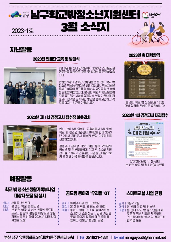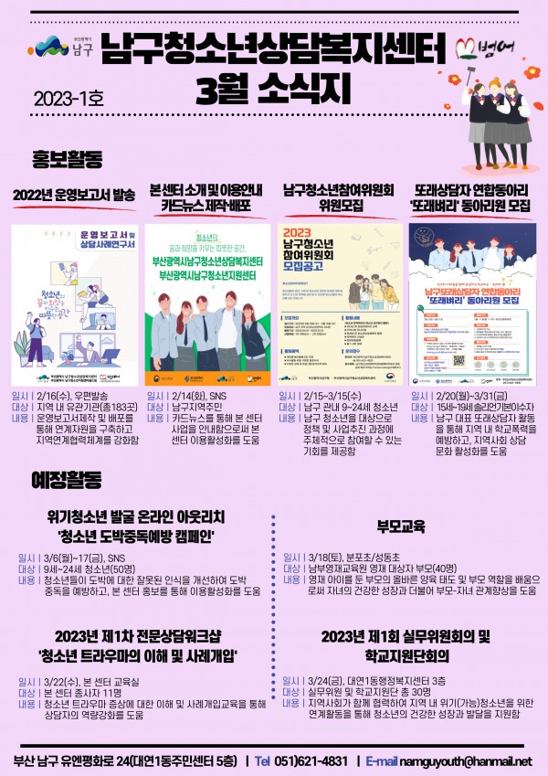 남구청소년상담복지센터·남구학교밖청소년지원센터 3월 소식입니다:)