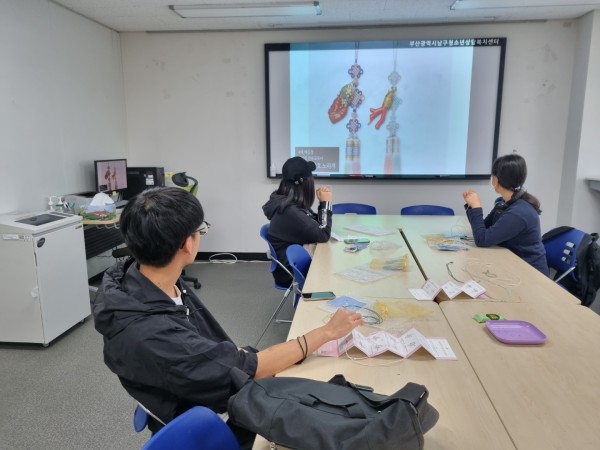 ❍ 내용 : 문화재재단 연계 문화유산 특성화 교육을 통해 국가무형문화재 매듭장 전승교육사의 매듭장 온라인 교육과 매듭 장신구 만들기 체험활동을 진행하였습니다.