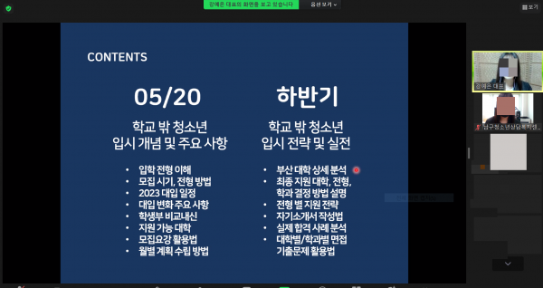 꿈드림 2022년 대학입시설명회 진행