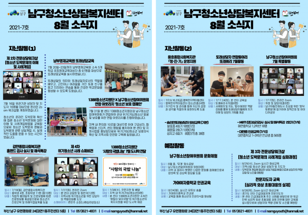 8월 소식지 페이지 정보 작성자 최고관리자 작성일21-08-10 09:11 조회1,761회 댓글0건 이전글 다음글 답변 목록 본문 남구청소년상담복지센터, 꿈드림 8월소식입니다~^^ 댓글목록 등록된 댓글이 없습니다. 이전글 다음글 답변 목록