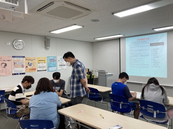 ❍ 내용 : 2021년 청소년근로보호센터에서 진행하는 '찾아가는 청소년 근로권익교육'을 통해 학교 밖 청소년들에게 필요한 기본적인 청소년 근로권에 대해서 교육함.
