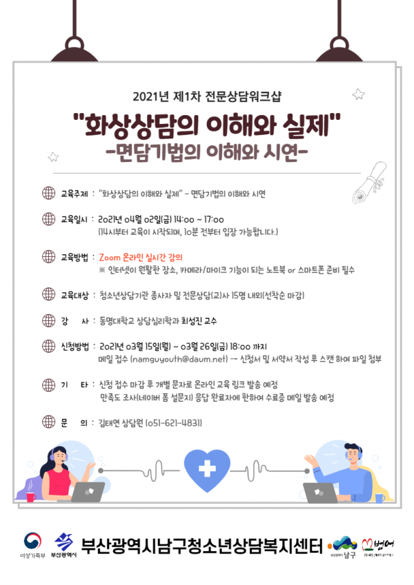 2021년 제1차 전문상담워크샵 [화상상담의 이해와 실제] 안내