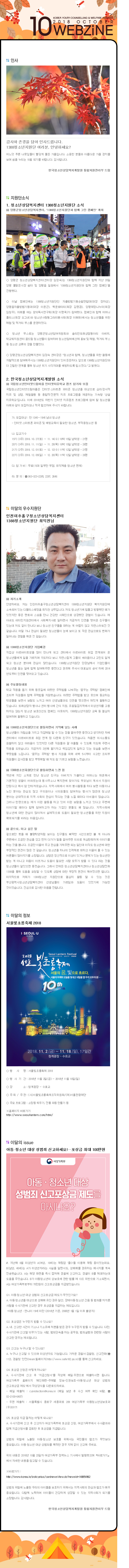 안녕하세요, 2018. 10월 1388청소년지원단 웹진입니다.