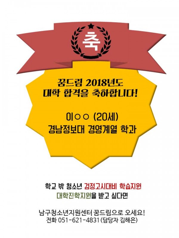 ★꿈드림 학교 밖 청소년 대학 진학★ 페이지 정보 작성자 최고관리자 작성일18-02-12 14:49 조회13,799회 댓글0건 본문 꿈드림 학교 밖 청소년 2108년도 대학진학 이전글 다음글 목록