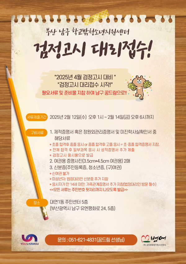 문의: 051) 621-4831 (꿈드림 선생님)
