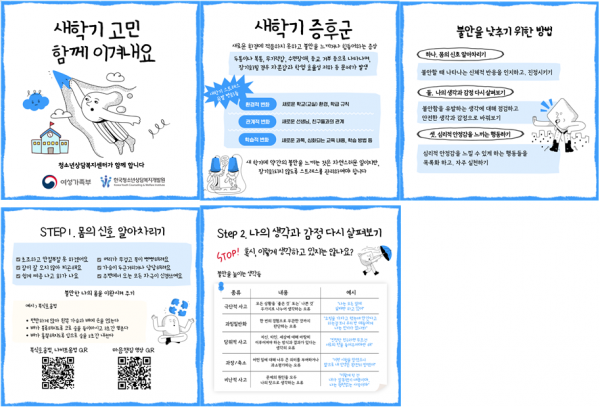 새학기를 맞이하여 불안감이 높은 청소년들을 대상으로 제공할 수 있는 정보를 담은 카드뉴스를 배포합니다 ~