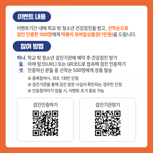 [2022년 학교 밖 청소년 건강검진 수검 이벤트]