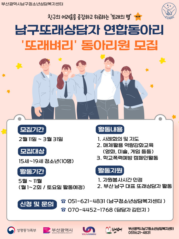 남구 대표 또래상담자를 희망하는 청소년들의 많은 지원바랍니다~^^