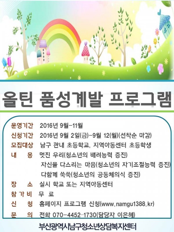 대상: 부산시 남구 관내 초등학생(초등학교, 지역아동센터)
