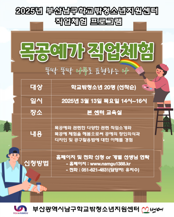 남구학교밖청소년지원센터 직업체험(목공예가) 프로그램 참여 청소년 모집