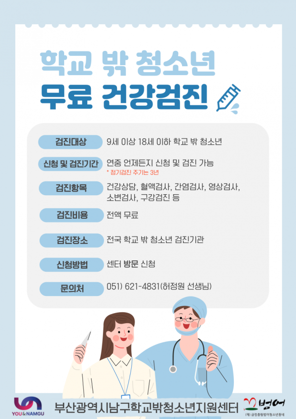 2025년 학교 밖 청소년 건강검진 신청 안내