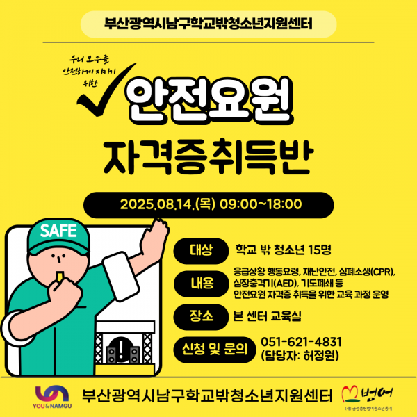 남구학교밖청소년지원센터 자격증취득반(안전요원 자격증) 참여 청소년 모집