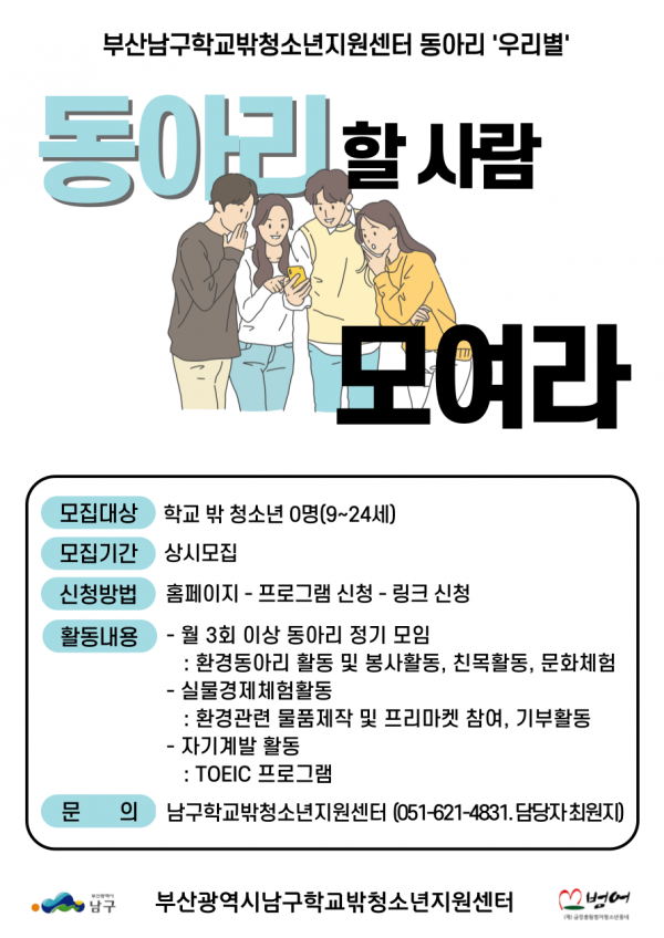 남구학교밖청소년지원센터 동아리 '우리별' 인원 모집