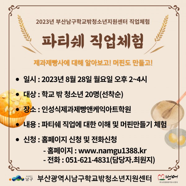남구학교밖청소년지원센터 직업체험(파티쉐) 참여자 모집