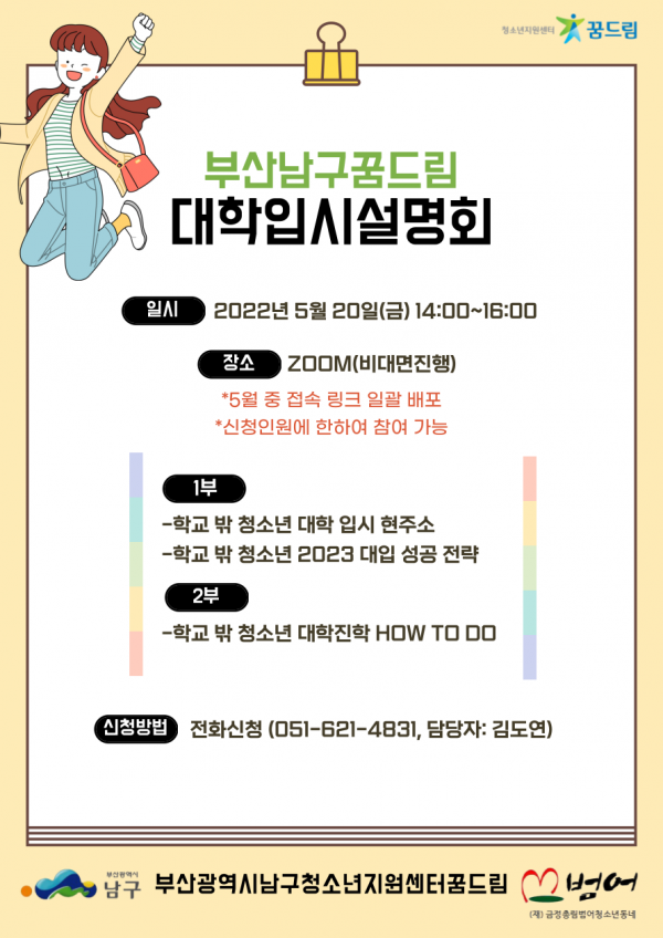 꿈드림 대학입시설명회(1차) 참여 인원 모집