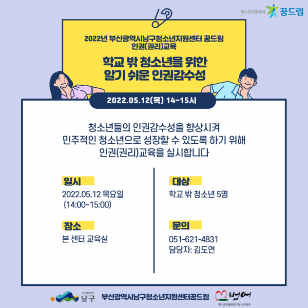 꿈드림 인권(권리)교육 참여 인원 모집