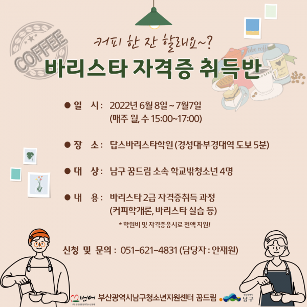 남구 꿈드림 바리스타2급 자격증취득반 인원 모집