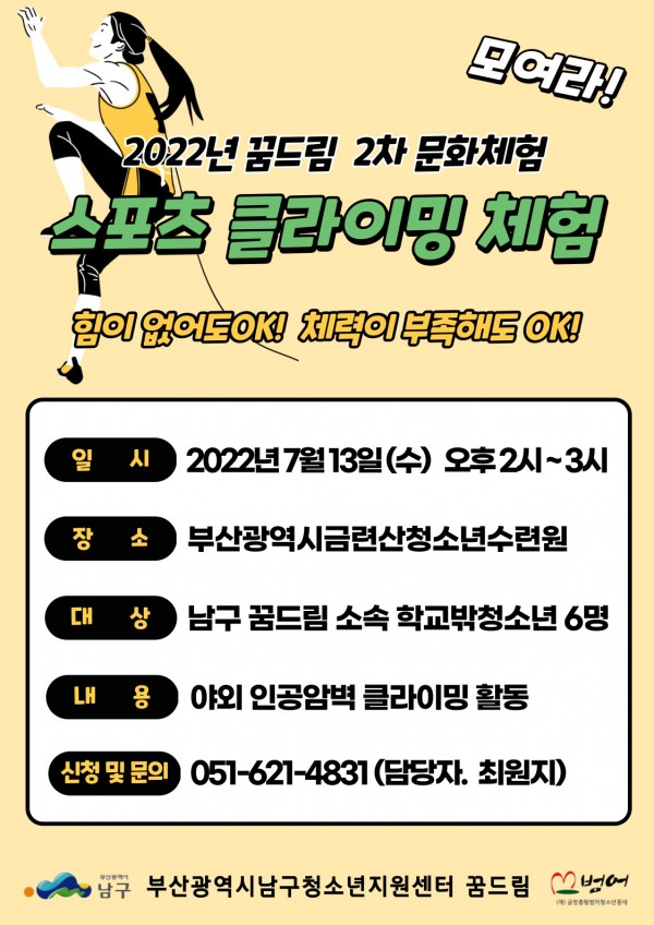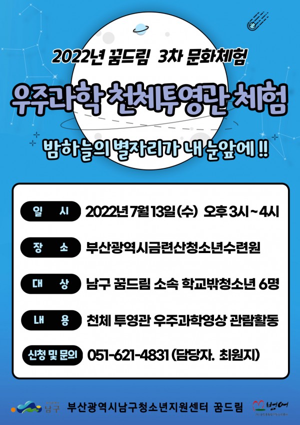 남구 꿈드림) 2022년 2,3차 꿈드림 문화체험(스포츠클라이밍, 우주과학 천체투영관 체험) 참여 인원 모집