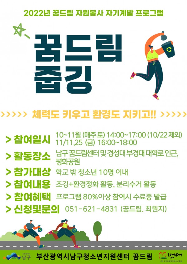 2022년 꿈드림 자원봉사 자기계발 프로그램 '꿈드림 줍깅'이 진행될 예정입니다.