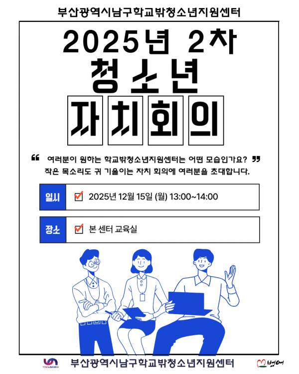 남구학교밖청소년지원센터 2차 청소년 자치회의 참여 청소년 모집