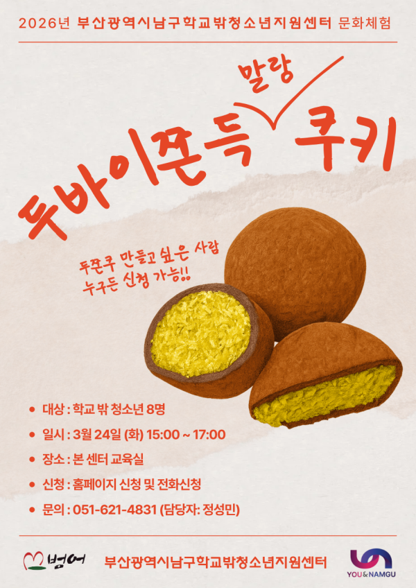 학교밖청소년 지원센터 문화체험 프로그램 '두쫀말랑쿠' 참여 청소년 모집