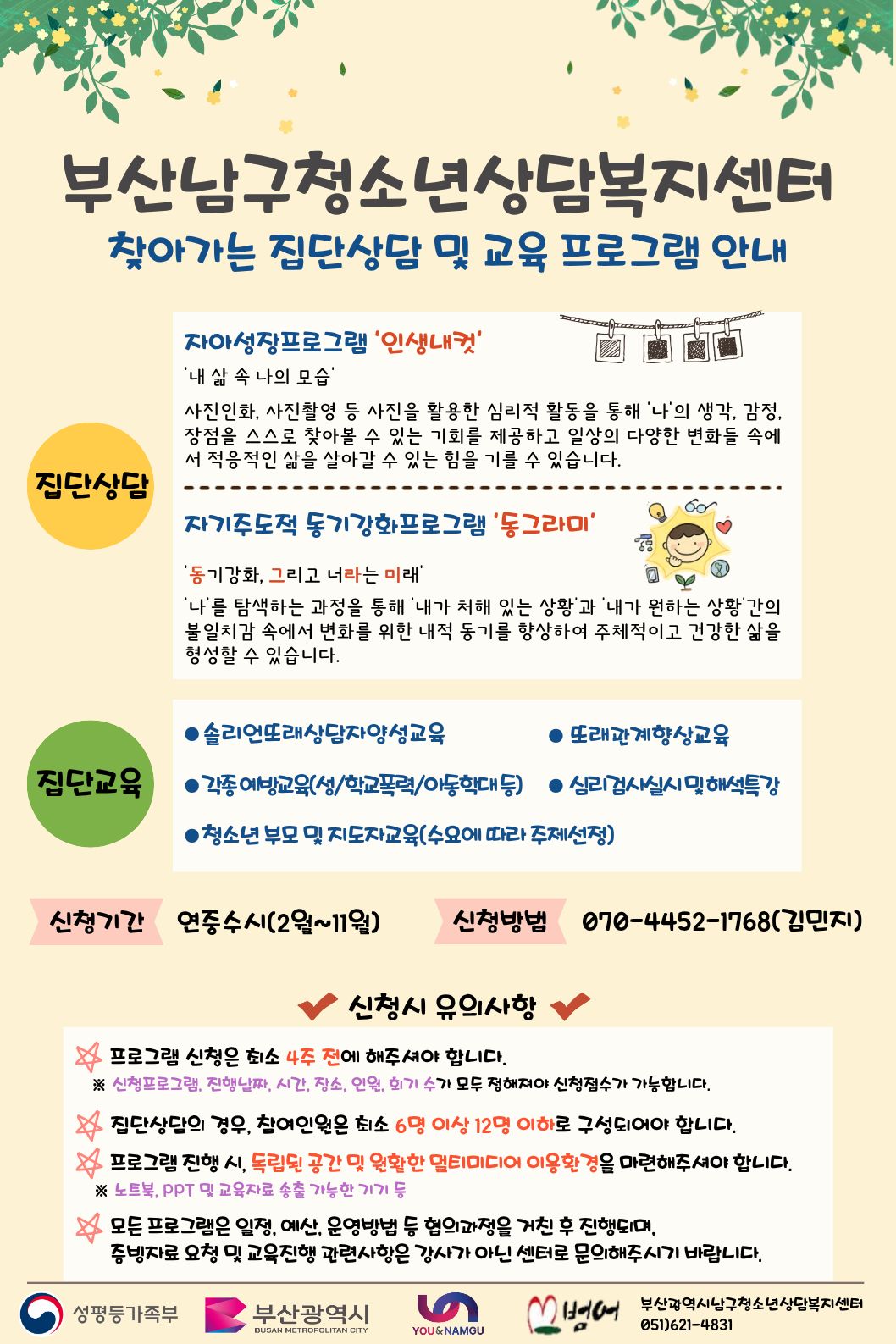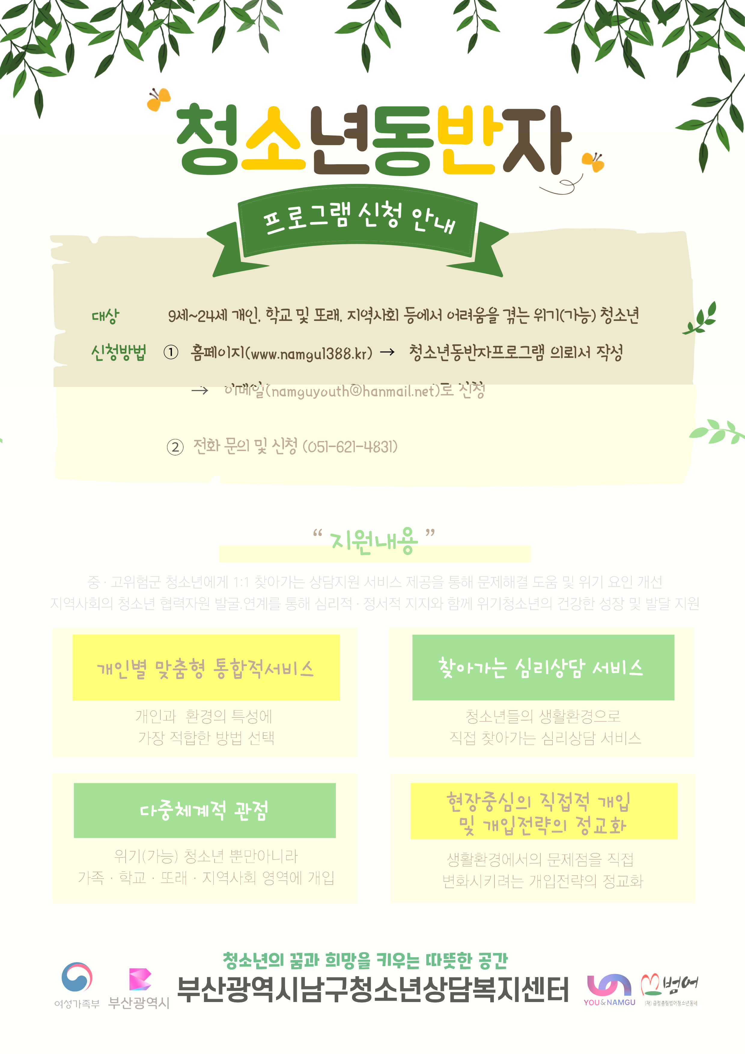 남구청소년상담복지센터·남구청소년지원센터 소개 및 이용안내